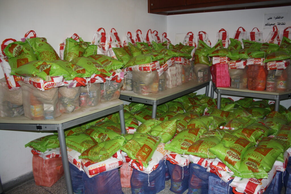 Plus de 400 paniers alimentaires ont été distribués dans différents quartiers populaires de Rabat et dans plusieurs zones rurales, contenant des produits essentiels : farine, huile, sucre, dattes, thé, lentilles, et conserves.